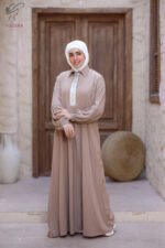 عباية حريمي موديل يسرا بالياقة شريط ذهبي